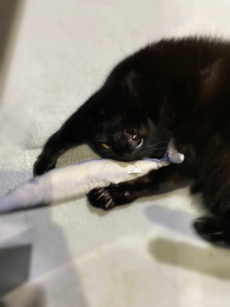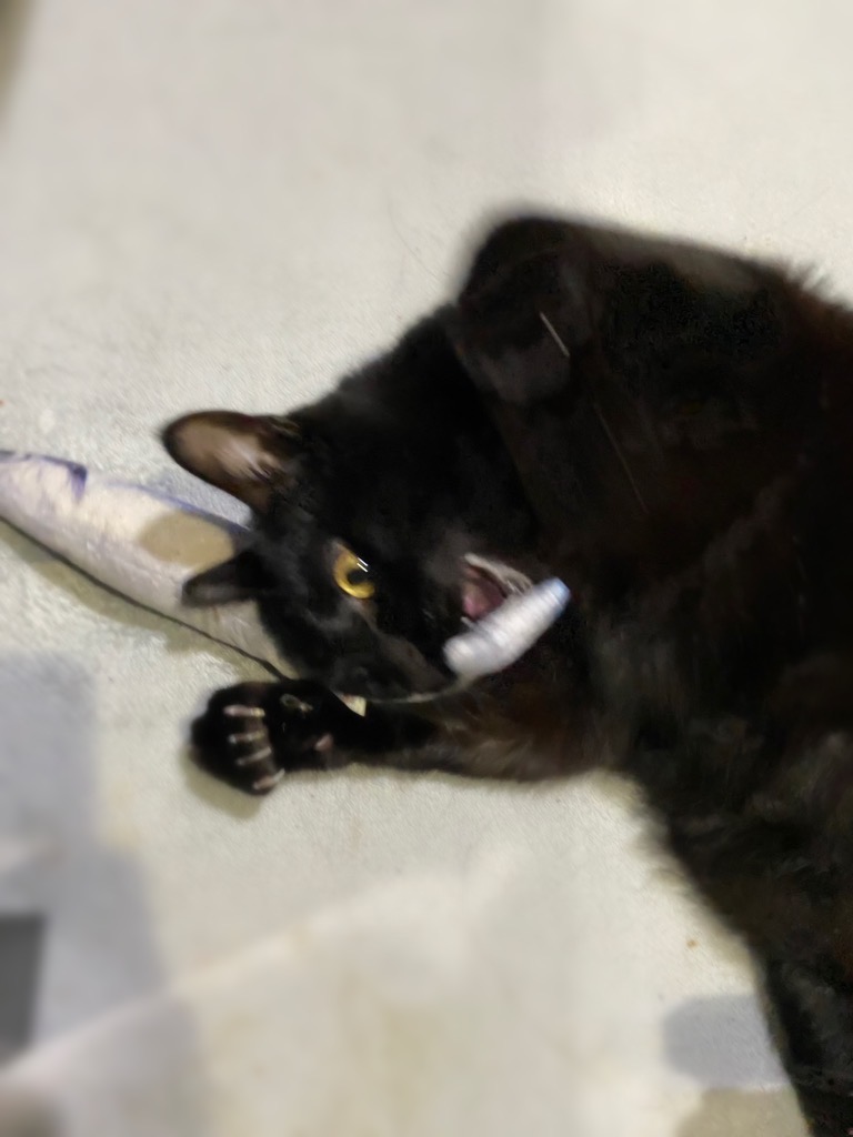 魚をそばにおいたら久しぶりに遊んでました。