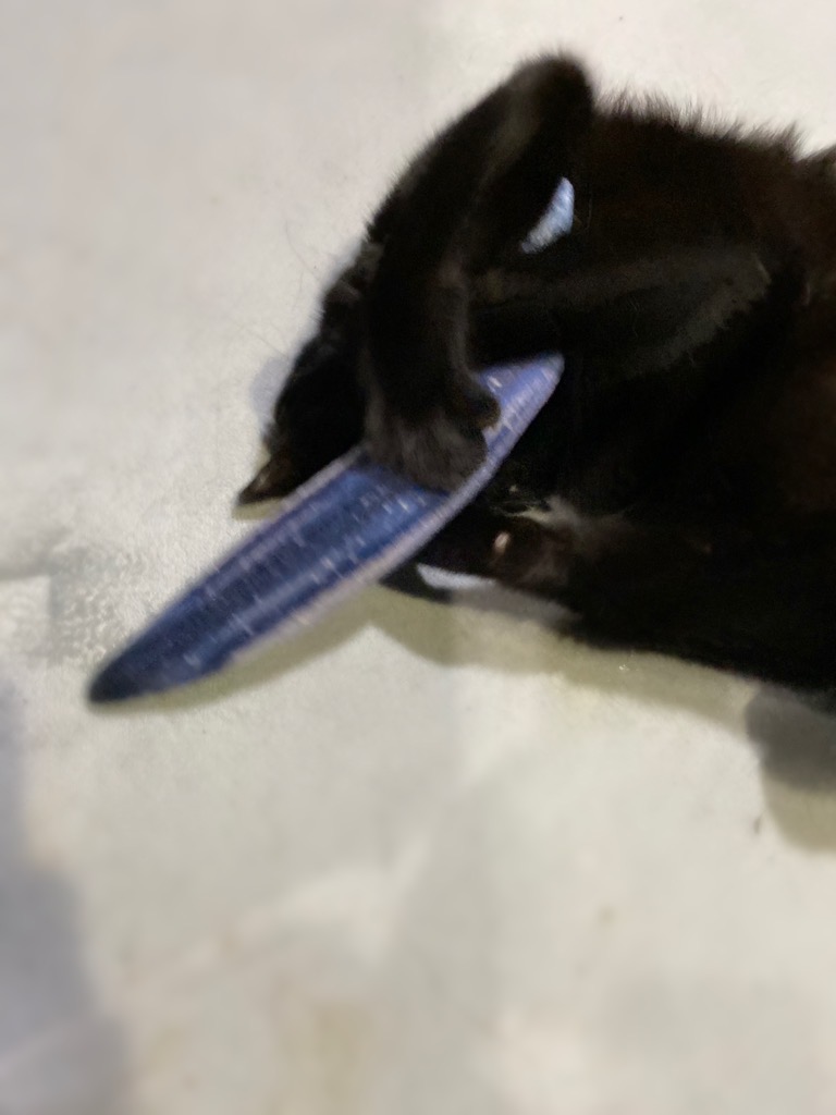 うちはぬいぐるみ系おもちゃとかに興味示さなくって、羊毛のちっさいボールに一生懸命ケリケリしてる姿はちょっとおもしろいですよ