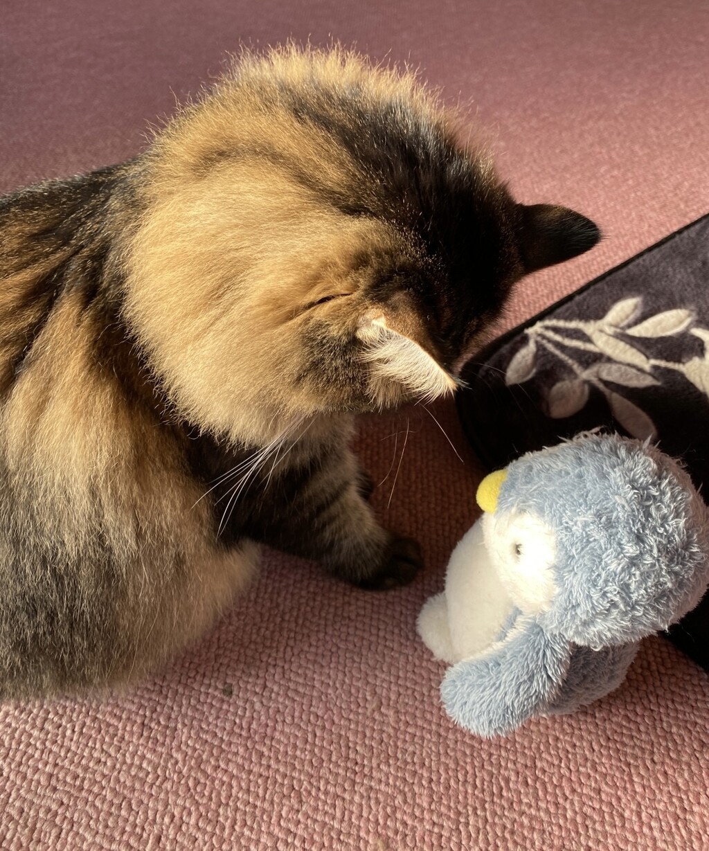 【猫写真】最近のお気に入りのポカポカ場所 2023年12月07日 最近マロが見つけたお気に入りのポカポカ場所2階の一番日当たりが良い部屋です朝のブラッシングが終わったらこの部屋に母を連れてくるマロちゃんこの部屋にもお気に入りのペンギンがよく蹴ってよく舐めるのでケバケバしてます「にわとり」と、母からこの画像が送られてきましたーーーーーライブドアブログでの通知登録はこちらからお手数かけますーーーーー応援いつもありがとうございますーーーーー 「実家猫マロちゃん」カテゴリの最新記事 タグ :#マロちゃん < 前の記事次の記事 > コメント コメント一覧 (16) 1. 桜 2023年12月08日 00:37 マロちゃんはルーティンがきちんと決まっているのですね👍✨️ 規則正しい生活は健康にいいですもんね( •̀ᴗ•́ ) ̖́-︎💪 いつもお母様と仲良しで羨ましいです✨️ ウチのレン君 もう少し懐いてくれると嬉しいのですが(A^_^; 0 neohunyako がしました 8. フニャコ 2023年12月08日 23:36 >>1桜さん マロちゃんだいたいいつも決まってるみたいですねえ。お互い良い関係で良いですね!レンくんはクールなのでしょうか? 0 neohunyako がしました 12. 桜 2023年12月08日 23:41 >>8フニャコさん 甘えたいけど甘えられない、モジモジしてる感じがします(^^;) お迎えして7ヶ月なので少しづつ距離が縮まればいいなと思っています^^ 0 neohunyako がしました 17. フニャコ 2023年12月08日 23:59 >>12桜さん なるほど!寒くなるし距離も縮まってきそうですね! 0 neohunyako がしました 2. カズカズ 2023年12月08日 01:41 マロちゃん お部屋いっぱいあっていいね〜 広〜いお家に お母さんと2人でいいね〜 もしかして そこが マロちゃんの部屋ですか〜 確かに ニワトリにも 見える〜 0 neohunyako がしました 9. フニャコ 2023年12月08日 23:37 >>2カズカズさん ちょうどマロの部屋の真上の部屋になります。気に入った場所を見つけるとしばらく通いますねえ。 0 neohunyako がしました 3. 黒猫缶 2023年12月08日 08:43 ニワトリ!!!(笑) しっぽのふさふさは似てる〜✨ マロ首の毛がもっさりしてるからか? 《くびれが》ある様に…見える💖 ブラッシング終わった後だと 背中の毛が艶々ですね💕💕 0 neohunyako がしました 10. フニャコ 2023年12月08日 23:41 >>3黒猫缶さん マロくびれありますよね謎のくびれが。なんでくびれてるんだろうといつも思ってました(笑)ブラッシング後マロつやつやですー 0 neohunyako がしました 4. 楓ママ 2023年12月08日 16:09 ポカポカ部屋でくつろぐマロちゃん幸せそう💗 大好きなお母さまもペンギンちゃんもいるしね〜 1枚目の写真のマロちゃんのフォルムは〜 獅子舞いかな😆 最後の写真はニワトリ? お母さま なるほどです!笑 0 neohunyako がしました 13. フニャコ 2023年12月08日 23:45 >>4楓ママさん ポカポカは気持ち良いですねえ。ペンギンが何体もいろんな部屋にいます(笑)獅子舞っぽいですね。布かぶってる感があります。ニワトリは尻尾が似てるのでしょうかね! 0 neohunyako がしました 5. AF23 2023年12月08日 16:58 立派な襖ですね 松の木の絵と、姫さまがよくお似合いです ラストのお写真、マロちゃんが乗ってるのはテーブルかな? 窓からの光… 羽根飾りみたいなしっぽ、水面に映ったような逆さマロちゃんが幻想的🍂 0 neohunyako がしました 14. フニャコ 2023年12月08日 23:56 >>5AF23さん 和な感じの部屋と洋っぽいマロのコラボですね。乗ってるのはガラステーブルですーちょっと良い感じですね(笑) 0 neohunyako がしました 6. saruninko 2023年12月08日 18:49 マロ殿の冬場のお気に入りスポットが、 増えたのですね! 寒い季節は陽当りの良い部屋は 最高ですよね! お気に入りのペンギンさんもいて、 完璧てすね。 そして、確かに、シルエット”ニワトリ“!! お母様、”マロ殿“が、色々なモノにに重なって 見えてるのでしょうね(≧▽≦) 0 neohunyako がしました 15. フニャコ 2023年12月08日 23:57 >>6 saruninkoさん 今の時期はポカポカの部屋が幸せですねえ。お気に入りの場所に母もいてほしいんですね。母はいつもマロを何かに例えがちですね(笑 0 neohunyako がしました 7. かえる 2023年12月08日 21:15 にわとりマロちゃん芸術的です✨ 0 neohunyako がしました 16. フニャコ 2023年12月08日 23:58 >>7かえるさん ありがとうございます! 0 neohunyako がしました コメントフォーム 名前 コメント 記事の評価 リセット リセット 顔 星 情報を記憶 コメントを投稿する